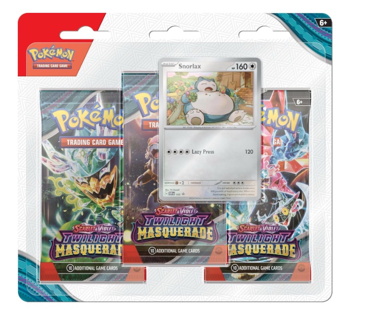 Pokemon TCG: Scarlet Violet Twilight Masquerade 3 Pack Blister: Snorlax 3 Booster Packs 1 Foil Promo